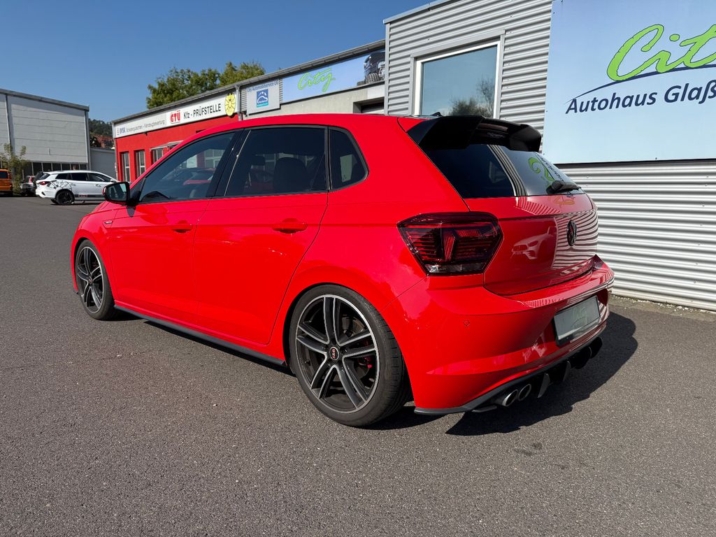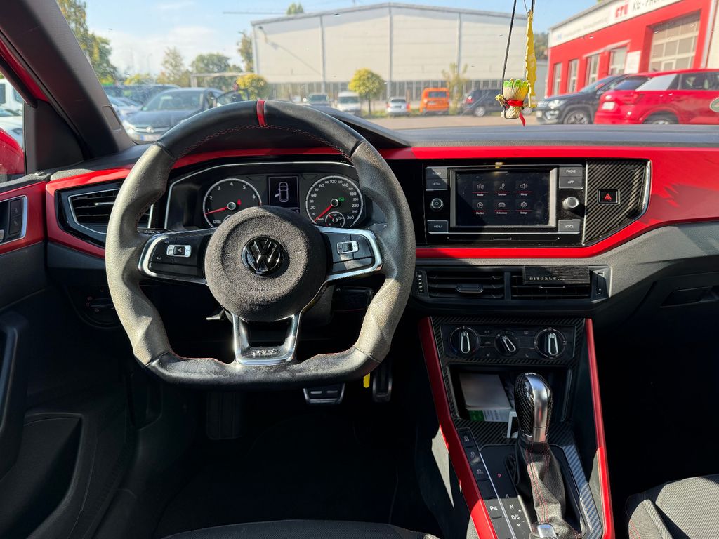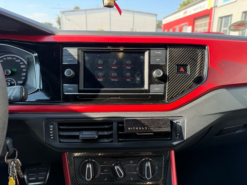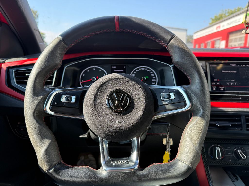 3-Punkt-Sicherheitsgurt hinten mitte, Ablagetasche an Vordersitzlehnen, Airbag Fahrer-/Beifahrerseite, Beifahrerairbag abschaltbar, Ambiente-Beleuchtung weiß, Antriebs-Schlupfregelung (ASR), Audiosystem Composition Colour (Radio / SD-Karten-Schnittstelle), Ausstattung GTI, Automatische Fahrlichtschaltung (ALS) mit Leaving Home / Coming-Home-Lichtfunktion, Außenspiegel elektr. verstell- und heizbar, Außenspiegel und Türgriffe außen in Wagenfarbe, Bremsassistent, Bremsenergierückgewinnung, Bremssättel Rot lackiert, Chrom-Paket 2, Dachhimmel Stoff, schwarz, Doppelendrohr Chrom, Drehzahlmesser, Einparkhilfe vorn und hinten, Einstiegsleisten (Aluminium), Elektron. Differentialsperre (XDS), Fahrassistenz-System: Berganfahr-Assistent, Fahrassistenz-System: Fahrprofilauswahl, Fahrassistenz-System: Fußgängererkennung, Fahrassistenz-System: Müdigkeitserkennung, Fahrassistenz-System: Umfeldbeobachtungssystem (Front assist) mit City-Notbremsfunktion, Fensterheber elektrisch vorn und hinten, Frontscheibe Verbundglas getönt, Funkschlüssel (2) klappbar, Fußmatten Textil, Fußraumbeleuchtung vorn LED, Gepäckraumabdeckung / Rollo, Gepäckraumbeleuchtung, Geschwindigkeits-Begrenzeranlage, Handbremshebelgriff Leder, Heckleuchten LED, dunkelrot, Heckscheibenwischer, Innenausstattung: Dekoreinlagen Rot, Innenleuchten LED, Innenspiegel abblendbar, Isofix-Aufnahmen für Kindersitz an Rücksitze (inkl. i-Size-Kindersitze), Karosserie: 5-türig, Kennzeichenbeleuchtung LED, Kopf-Airbag-System vorn und hinten inkl. Seitenairbag vorn, Kopfstützen hinten (3-fach), Lendenwirbelstützen vorn, Lenkrad (Sport/Leder) mit Multifunktion und Schaltfunktion, Lenksäule (Lenkrad) mechan. verstellbar, Höhen-/Längsverstellung, Leseleuchten vorn und hinten LED, Leuchtweitenregelung, LM-Felgen, Mittelarmlehne vorn verschiebbar, mit Ablagefach, Mobile Online Dienste VW Connect, Motor 2,0 Ltr. - 147 kW 16V T FSI / TSI, Motor-Schleppmoment-Regulator (MSR), Multifunktionsanzeige Plus, Multimedia-Schnittstelle USB und USB-Ladeanschluß vorn, Nebelschlussleuchte, Nichtraucher-Paket, Otto-Partikelfilter (OPF), Pedale Edelstahl, Reifenkontroll-Anzeige, Rücksitzlehne geteilt, Schadstoffarm nach Abgasnorm Euro 6d-TEMP, Schalt-/Wählhebelgriff Sport, Scheibenwischer mit Intervallschaltung, Scheibenwischer mit Intervallschaltung, regulierbar, Sicherheitsgurte hinten außen mit Gurtstraffer, Sicherheitsgurte vorn mit Gurtstraffer, höhenverstellbar, Sitzbezug / Polsterung: Stoff, Sitze vorn höhenverstellbar, Sitze: Top-Sportsitze vorn, Sonnenblenden mit Spiegel (beleuchtet), Sport-Fahrwerk, Start/Stop-Anlage, Stoßfänger Sport-Design, lackiert, USB-Anschlüsse (2) für 2.Sitzreihe (nur Ladefunktion), Verbandkasten und Warndreieck, Verglasung grün getönt, Warnanlage für Sicherheitsgurte vorn und hinten